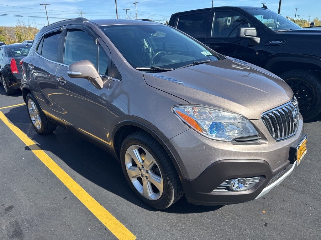 Experience dependable, CARBRAVO CERTIFIED confidence in this 2015 Buick Encore Convenience. With AWD and a smooth 6-speed automatic, this compact SUV delivers efficient city and highway driving (23/30 MPG) in a refined package. The turbocharged ECOTEC 1.4L engine provides peppy acceleration, while Cocoa Silver Metallic adds a stylish touch. Inside, youll find comfortable seating, practical cargo space, and Buicks proven connectivity for everyday versatility. Dont miss your chance to see this Encore in person book an appointment or stop by to test drive today. Please verify the accuracy of information in regard to the actual vehicle equipment, miles, vehicle specifications, location, and vehicle price with dealer. For more information on this vehicle, or to make an appointment call Rosie at 585-227-1900 . 4389 W Ridge Road. Rochester, NY 14626