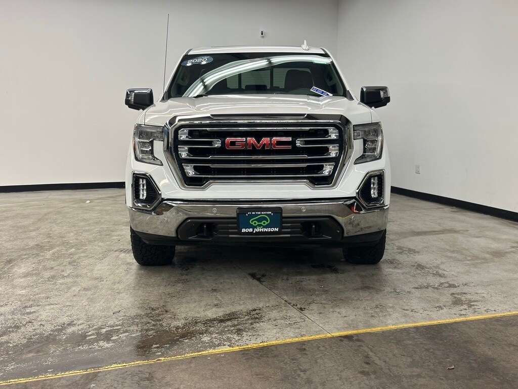 Take command of every drive in this 2020 GMC Sierra 1500 SLT, finished in crisp Summit White with premium Jet Black leather interior. This truck is engineered to impress, featuring 4WD, the rugged X31 Off-Road Package, and the ProGrade Trailering System with Hitch Guidance w/Hitch View and an Integrated Trailer Brake Controller, making it a powerhouse for work or play. Inside, luxury and comfort shine with heated and ventilated front seats, heated second-row outboard seats, a power sunroof, and a premium Bose 7-speaker audio system that transforms every drive into an experience. Confidence comes standard with advanced safety features from Driver Alert Package I & II, including Lane Change Alert with Side Blind Zone Alert, ensuring peace of mind on every journey. The bold design is matched by functional details like a floor-mounted center console, dual exhaust with premium tips, rear step bumper, and power sliding rear window. Plus, with the SLT Premium Plus Package and SLT Convenience Package, this Sierra delivers everything you could want in a premium pickup. As a CarBravo Certified vehicle, youll also enjoy added confidence with a 6-month/6,000-mile bumper-to-bumper warranty, a 172-point inspection, OnStar safety services, and a 3-month SiriusXM trial subscription. With 19,789 miles below market average, this Sierra SLT is an incredible find that wont last long. See it today at Bob Johnson GM, 7000 W Main Rd, Le Roy, NY 14482, or call (585) 768-2251 to schedule your test drive!