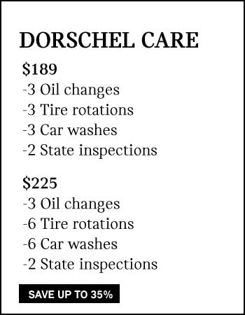 oil changed by our certified professionals at Dorschel Service with a ton of added bonuses. With DorscheCare you get 3 oil changes, 3