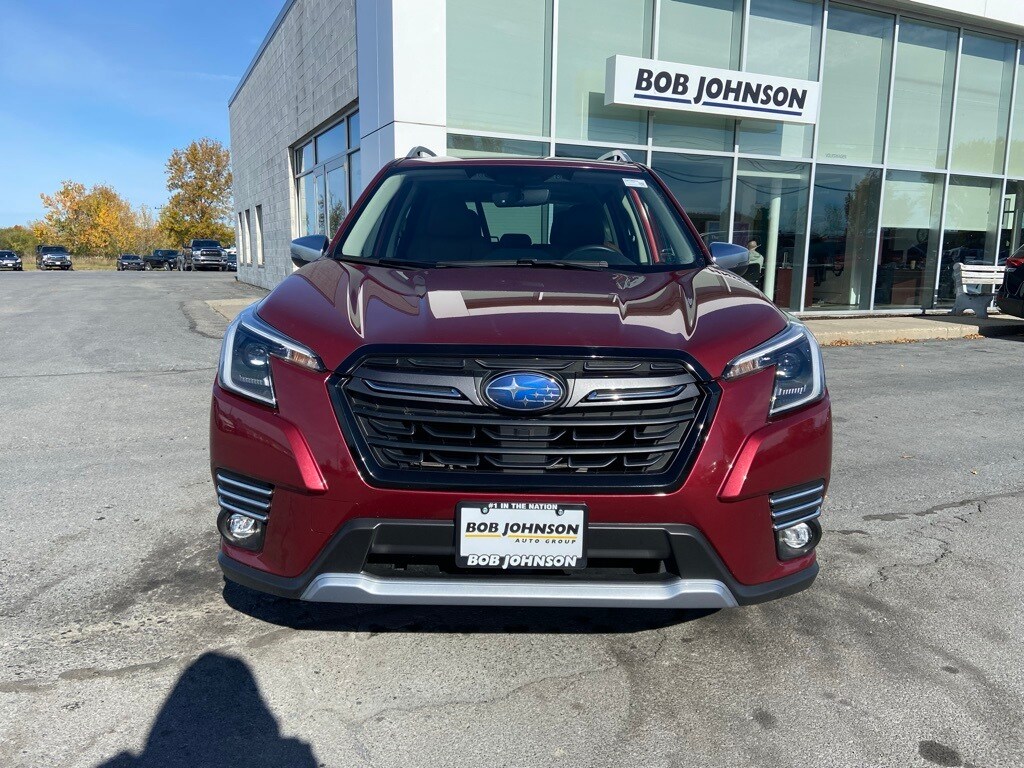 *Bluetooth*, Forester Touring, 4D Sport Utility, 2.5L 4-Cylinder DOHC 16V, Lineartronic CVT, AWD, Crimson Red Pearl, Saddle Brown Leather, 4-Wheel Disc Brakes, Air Conditioning, AM/FM radio: SiriusXM, CD player, Dual front impact airbags, Dual front side impact airbags, Electronic Stability Control, Emergency communication system: STARLINK Safety and Security (Subscription Required), Exterior Parking Camera Rear, Four wheel independent suspension, Fully automatic headlights, Heated Front Bucket Seats, Heated rear seats, Heated steering wheel, Leather Shift Knob, Perforated Leather-Trimmed Upholstery, Power Liftgate, Power moonroof: Panoramic, Power passenger seat, Radio: Subaru Starlink 8.0" Multimedia Nav System, Remote keyless entry, STARLINK/Apple CarPlay/Android Auto, Steering wheel mounted audio controls, Trailer Hitch, Wheels: 18" x 7.0 J Dark Gray Machine Finish Alloy. 3157888989. 2023 Subaru Forester Touring